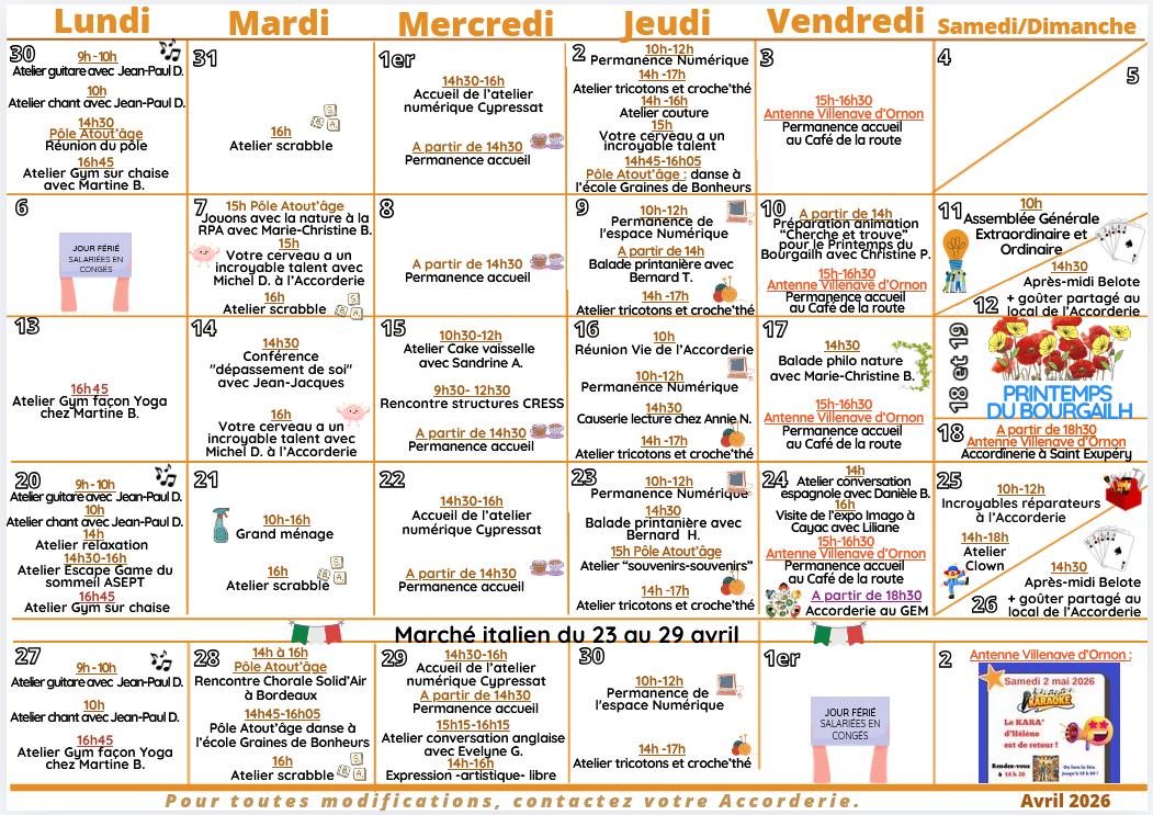 Le planning d'avril 2026