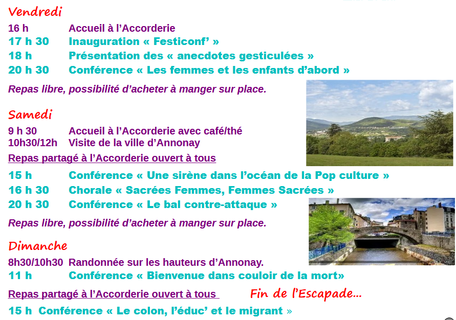 Programme de l'escapade du 14 au 16 novembre 2025 à Annonay